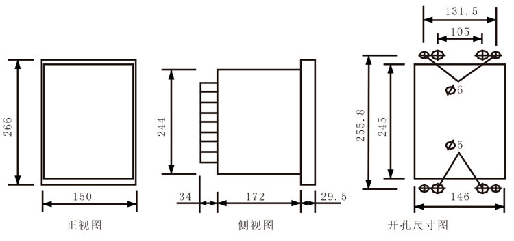 安装说明:主控单元为嵌入式安装,可以安装于合适位置的开关柜门。